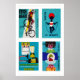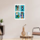 Turquoise Czech Matchbox Labels Grid Print Poster