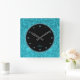 Turquoise Floral Falsch Leather Embossed Look 2 Quadratische Wanduhr