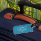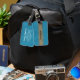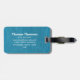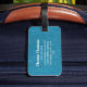 Wenn Ihr Gepäck verloren oder verlegt ist, werden Sie sich freuen, dieses schöne und nützliche Etikett mit Ihren persönlichen Daten versehen zu haben. Beide Seiten sind mit einem original türkisblauen Denim-Stoff mit einer phantastischen Jeans-Textur bedeckt. Auf der Vorderseite befindet sich ein in einem modernen Schriftart in Schwarz geschriebener, mit zwei türkisfarbenen Linien untermalt goldener Hintergrund. Auf der Rückseite können Sie ganz einfach Ihre Kontaktinformationen (Vor- und Nachname, E-Mail, Telefonnummer und Adresse) hinzufügen. Kaufen Sie für Ihr Gepäck und für Ihre Familie Tags.
