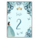 Turquoise Gold Floral Princess Quinceañera Tischnummer