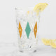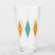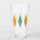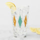 Add a bit of fun to your dining with this mid-century modern glass tumbler, which features 3 large diamonds with 2 stars in the center, in a combination of the colors turquoise blue, orange, and cream.