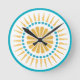 Turquoise Orange Sunburst Wall Clock Runde Wanduhr