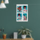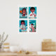 Turquoise & Pink Matchbox Labels Grid Print Poster