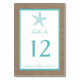 Turquoise Starfish Burlap Beach Wedding Collection Tischnummer