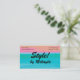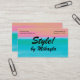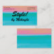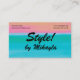 Simple and eye-catching, this business card for a stylist has a gradient shading from turquoise at the bottom to peach at the top. Could be used for fashion, hair stylist, nail artist, interior design, and more.