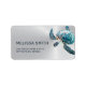 This elegant modern coastal label features a three dimensional turquoise turtle on a faux silver foil background.