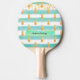 Türkisfarbenes Aquamarines Pingpongpaddel mit tropischem Glitzer Ananas-Muster und weißen Streifen. Verwenden Sie diese Vorlagenoption, um den Text auf Vorder- und Rückseite zu ändern. | Verwenden Sie weitere Optionen, um den Textstil, die Textgröße und -farbe bei Bedarf zu ändern.