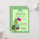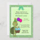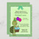 Niedlich Kids Turtle Einladung mit einer grünen Schildkröte mit einem Party Hut, blauem Kuchen mit einer Kerze und Geburtstagsballons. Ideal für Geburtstagspartys mit Schildkrötenthemen. Passen Sie Ihre Party an.