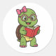 Turtle reading a book runder aufkleber