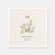 Featuring a minimalist monogram, delicate watercolor illustration of a romantic Tuscan villa gate, and elegant typography with the couple’s names, wedding location, and date, these napkins capture the relaxed beauty of an Italian destination wedding.