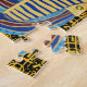 Dieses bunte Puzzle basiert auf meinem Bild der goldenen Maske des ägyptischen Jungen König Tutankhamun, dessen Kartuche einen gemusterten Hintergrund bildet.