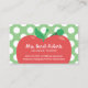 Tutor Niedlich Apple & Worm Polka Dots Green Visitenkarte