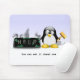 Funny mousepad. Do you like Daylight Saving Time? This Chibi Tux Penguin smashes clock and says You can set it ahead now! Digital clock has smoke rising from it and displays HELP