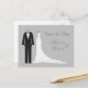 Tuxedo, auf silber Save the Date Postkarte gown