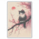 Eine ruhige, schwarz-weiße Katze mit auffallend blauen Augen, die auf einem Kirschblütenzweig steht, umgeben von sanften rosa und roten Blüten. Das Design hat eine zarte, wasserfarbene Ästhetik mit einer Touch japanischer Tintenkunst, die Ruhe und natürliche Schönheit hervorruft.