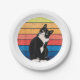 Tuxedo Cat Geschenk Retro Farben für Tierfreunde Pappteller