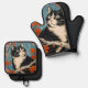 Phantastische, einzigartig illustrierte Ofenhalter und Mitt für die Wohngestaltung.