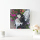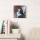 Tuxedo Cat Maroon Dark Pink Cats and Flowers Quadratische Wanduhr
