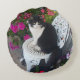 Tuxedo Cat Maroon Dark Pink Cats and Flowers Rundes Kissen