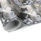 A curious tuxedo cat is joyfully yanking white tissues from a charming floral box perched on the bathroom counter, adding a delightful touch of mischief to the scene