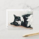 Diese Postkarte zeigt eine Reproduktion meines originalfarbigen Bleistiftes, der von einer Tuxedokatze gezeichnet wird.
