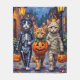 Adorable Tuxedo-Katzen, die in verspielten Halloweenkostümen gekleidet sind, tragen Kürbiseimer, während sie unter dem mondbeleuchteten Himmel tricksen oder behandeln. Dieses festliche Design hebt den klassischen schwarz-weißen Mantel der Rasse, die hellen Augen und die eigenartige Persönlichkeit hervor, die die sprichwörtliche und dennoch lustige Atmosphäre Halloween-Abends perfekt einfangen. Eine charmante Feier für Katzenliebhaber und Halloween-Fans gleichermaßen.