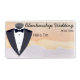 Helfen Sie den Gästen, sich die Namen anderer Hochzeitsgäste zu merken oder zu lernen, mit einem individuellen Label-Namensschild mit Bräutigam-Tuxedo-Kunst und farbenfroher Aquarellkunst. Personalisieren Sie die Textfelder, entfernen Sie jeden Text oder bearbeiten Sie ihn mit dem Bearbeiten-Design-Tool, um eine Schriftart-Farbe, -größe und -Stil auszuwählen, die Sie bevorzugen. Die Größe und das Design der Versandmarke ermöglichen es, den Namen des Teilnehmers an der Hochzeitsfeier, dem Probe-Dinner oder anderen Hochzeitsveranstaltungen hinzuzufügen.