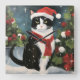 Tuxedo Katze im Schnee Weihnachten Quadratische Wanduhr