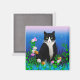 Tuxedo Katze mit Blume Magnet