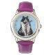 Kinderuhr aus Edelstahluhr mit lila Lederarmband
