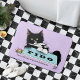 Niedliches, schwarz-weißes Tuxedo Kätzchen, das in einer blauen Hundeschale vor einem Hintergrund von lila sitzt.