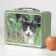 Das hübsche, schwarz-weiße Tuxedo Kätzchen (Xena) im Garten sieht auf dieser Lunchbox gut aus für jeden Katzenliebhaber