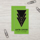 Ein stilvolles, modernes Deko-Design mit einem Trio aus goldfarbenen, schwarzen Dreiecken. Hier mit einem grünen Hintergrund dargestellt, können Sie die Hintergrundfarbe in eine beliebige Farbe ändern, indem Sie die Schaltfläche "Anpassen" auswählen. Dieses Visitenkartendesign funktioniert für eine Vielzahl von Berufen gut. Geben Sie Ihre Daten ein, indem Sie den Beispieltext in der Entwurfsvorlage ersetzen. Sie können alle Informationen weglassen oder hinzufügen, Schriftart ändern, Text verschieben, etc.