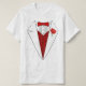 Spaß Tuxedo-T - Shirt für den Tag des Valentines, süßesten Tag, Jahrestag oder irgendeine Gelegenheit. Weißer Tuxkragen mit roter Herzweste und rotes bowtie mit Rote Rose Corsage buttonierre. Auch verfügbar auf dunklen Hintergrund-T - Shirts und -kleid.