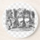 Runder Sandstein-Untersetzer mit einem Vintagen Alice im Wunderlandbild von Alice-Sitzung Tweedle Dum und Tweedle Dee auf einem grauen und weißen Schachbrett. See Untersetzer- und Papiercocktailserviette zusammenpassenden Papiers. Sehen Sie die gesamte Märchenland-Untersetzersammlung im FOOD/BEV | Untersetzerabschnitt.