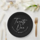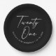 Elevate your celebration with this modern black “Twenty One” birthday paper plate. It features a clean minimalist design with elegant white handwritten script, creating a stylish and upscale look for any 21st birthday party. The bottom text is fully customizable, allowing you to add the birthday person’s name and special date. This timeless, neutral aesthetic pairs beautifully with gold, silver, monochrome, or modern luxe themes and works well for both casual and formal gatherings. These disposable plates are sturdy, practical, and perfect for serving appetizers, snacks, cake, and desserts while making cleanup quick and easy. Ideal for dinner parties, cocktail nights, club celebrations, outdoor events, or intimate at home birthdays. Perfect for modern minimal decor and black and white themes.