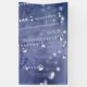 Die glatten Glastropfen spiegeln sich deutlich in den scharf fokussierten Kristallkugeln im Vordergrund wider. Die silbernen Zweige des Candelabra und die weiche blaue Atmosphäre und Lichter verleihen dem Stück einen frühen Abend Glühen.