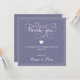 Mit dieser minimalen Dankeschön-Karte für Hochzeiten bedanken Sie sich für Eleganz und Einfachheit. Die lila, sanfte und rhythmisch klingende Karte zeichnet sich durch ein gepflegtes Design aus und verströmt Raffinesse und herzliche Wertschätzung. Ideal für Paare, die zeitlos schöne Lieben haben, ist jede Karte so gestaltet, dass sie jedes Hochzeitssmotiv ergänzt und Ihre Dankesbotschaft unvergesslich macht. Personalisieren Sie es mit Ihren Namen und einem herzlichen Hinweis, um einen bleibenden Eindruck auf Ihre Gäste verlassen.