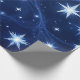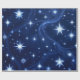Night sky filled with glowing stars and snowflakes in various sizes and styles. Set against a deep blue backdrop, the bright white and icy blue elements create a striking contrast. Wispy, wave-like light trails weave through the composition, adding motion and depth. The overall effect is magical and wintery—evoking a sense of wonder, serenity, and seasonal charm.