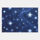 NIght sky filled with glowing stars and snowflakes in various sizes and styles. Set against a deep blue backdrop, the bright white and icy blue elements create a striking contrast. Wispy, wave-like light trails weave through the composition, adding motion and depth. The overall effect is magical and wintery—evoking a sense of wonder, serenity, and seasonal charm.