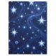 night sky filled with glowing stars and snowflakes in various sizes and styles. Set against a deep blue backdrop, the bright white and icy blue elements create a striking contrast. Wispy, wave-like light trails weave through the composition, adding motion and depth. The overall effect is magical and wintery—evoking a sense of wonder, serenity, and seasonal charm.