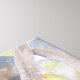 Instrumental im Abend abstrakte Wasserfarbe. Mit ultramarinalblau, roh sienna, verbrannt sienna, cadmium gelb und verbrannt sienna bemalt.