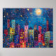 Tauchen Sie ein in eine Welt, in der jedes Gebäude mit "Twilight Mosaic: Urban Spectrum" eine Geschichte erzählt, eine bezaubernde Darstellung eines lebendigen Stadtbildes in der magischen Stunde der Dämmerung. Dieses Kunstwerk ist eine Tapisserie aus Leben, Licht und Farbe, die das Diversity und die Energie des städtischen Lebens feiert. Jedes Gebäude ist von Wärme befleckt, was auf die unzähligen Leben und Geschichten hindeutet, die sich innerhalb dieses Raumes entfalten. Die spielerische Anordnung der Formen und das Farbmosaik schaffen einen fast musikalischen Rhythmus, als sei die Stadt selbst ein lebendiger, atmender Organismus. Die reichen Purpel, feurige Orangen und tiefe Blues zeichnen ein Bild einer Stadt, die nie schläft, aber immer träumt. Die charmanten Details des Kunstwerks laden zum näheren blicken ein, um die Feinheiten und Geheimnisse dieser großstädtischen Leinwand zu entdecken. Lanterns schweben nach oben, fügen eine Touch von Launen und Staunen hinzu, während der Mond ein sanftes Licht über die Szene wirft und die unterschiedlichen Elemente zu einem harmonischen Ganzen vereint. "Twilight Mosaic: Urban Spectrum" ist perfekt für diejenigen, die Schönheit in der Hektik des Stadtlebens finden, die den Flickenteppich der urbanen Existenz schätzen. Es ist ein ideales Stück für ein lebendiges Wohnzimmer, ein belebendes Büro, oder als Zentrum in einer modernen Galeriemauer.