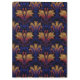 Das Produkt zeichnet sich durch ein sich wiederholendes verziertes Muster aus, das durch ein klassisches, barockes Design inspiriert wird. Das zentrale Motiv ähnelt einem stilisierten Flour-de-lis oder einem eleganten Plüschtier, das in lebhaften Gold-, Rot- und Orangetönen mit Gradienteneffekten dargestellt wird. Der Hintergrund ist ein tiefblaues Marineblau, was einen starken Kontrast schafft, der die Designelemente zum Pop macht. Das Muster hat ein luxuriöses und gemütliches Ambiente, symmetrische Details und fließende Kurven, die ihm ein ausgeklügeltes und zeitloses Aussehen verleihen.