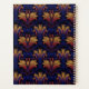 Das Produkt zeichnet sich durch ein sich wiederholendes verziertes Muster aus, das durch ein klassisches, barockes Design inspiriert wird. Das zentrale Motiv ähnelt einem stilisierten Flour-de-lis oder einem eleganten Plüschtier, das in lebhaften Gold-, Rot- und Orangetönen mit Gradienteneffekten dargestellt wird. Der Hintergrund ist ein tiefblaues Marineblau, was einen starken Kontrast schafft, der die Designelemente zum Pop macht. Das Muster hat ein luxuriöses und gemütliches Ambiente, symmetrische Details und fließende Kurven, die ihm ein ausgeklügeltes und zeitloses Aussehen verleihen.