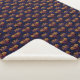Das Produkt zeichnet sich durch ein sich wiederholendes verziertes Muster aus, das durch ein klassisches, barockes Design inspiriert wird. Das zentrale Motiv ähnelt einem stilisierten Flour-de-lis oder einem eleganten Plüschtier, das in lebhaften Gold-, Rot- und Orangetönen mit Gradienteneffekten dargestellt wird. Der Hintergrund ist ein tiefblaues Marineblau, was einen starken Kontrast schafft, der die Designelemente zum Pop macht. Das Muster hat ein luxuriöses und gemütliches Ambiente, symmetrische Details und fließende Kurven, die ihm ein ausgeklügeltes und zeitloses Aussehen verleihen.