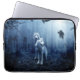 Dieses Thema der Wildnis zeigt zwei Wölfe in einem Wald in der Dämmerung.