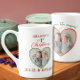 Je mehr, desto besser! Wenn die Urlaubssaison Ihre Familie mit Freude gesegnet hat, wählen Sie diese elegante Weihnachtsweihnachtsbäckerei-Tasse, um den schönsten Feiertagsfest zu feiern: die Ankunft Ihrer Zwillingsbabys. Das Design zeichnet sich durch eine einzigartige Typografie aus, die elegante Schrift mit Serifenschrift kombiniert und Platz für zwei herzförmige Fotos bietet. Geben Sie die Namen und den Namen der Person an: Großmutter, Großvater, Tante, Onkel, Patentin oder Pate. Ein einzigartiges Weihnachtsgeschenk für Großeltern, Tanten, Onkel, Pateneltern und Familienmitglieder.