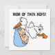 Eine wunderbare Mama des Twin Boys Designs mit einem Storch, der eine blaue Decke mit Baby Boys Zwillingen trägt, und einem schwarzen Text mit dem Titel "Mama von Twin Boys!". Mama von Twin Boys Sake-Boxen, Fliesen, Ziergegenstände, Notizbücher, Aufkleber, Tasse, Mousepads, Tote-Taschen, Schlüsselanhänger, Magnete, und vieles mehr!