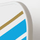 Dieses schicke, sportliche Design zeichnet sich durch einen weißen Hintergrund mit zwei hellblaue Top-Rennstreifen mit horizontalem Akzent und warmen braunen Pinstreifen aus.